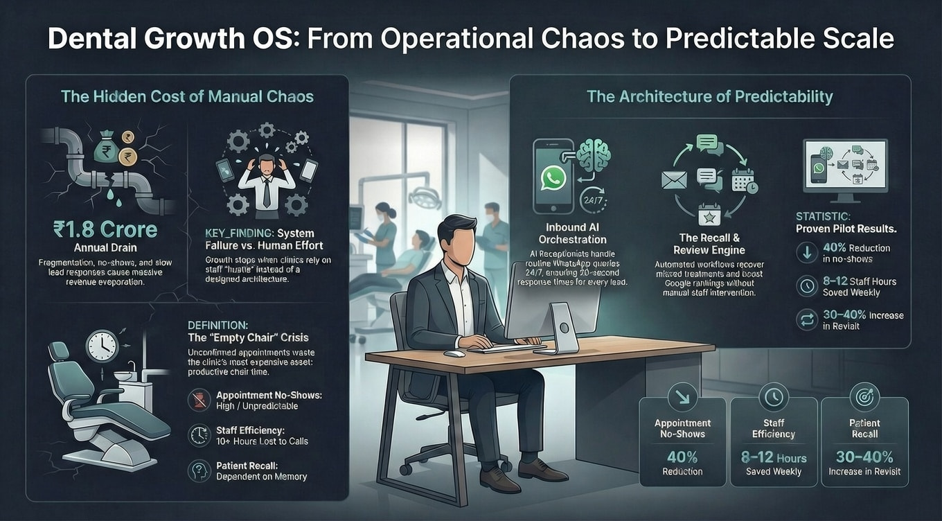 Owners invest in ads, hire staff, buy practice management software, implement WhatsApp automations. They follow advice. They work harder. And yet something invisible keeps pulling them back—lost calls, missed follow-ups, no-shows, staff burnout, revenue that never feels stable.