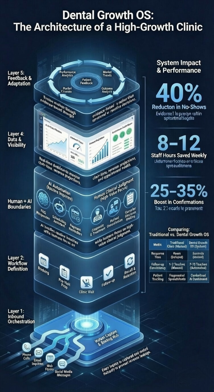 A dental clinic operating system does the same thing. It orchestrates humans, processes, tools, and data into a coordinated system that produces predictable outcomes.