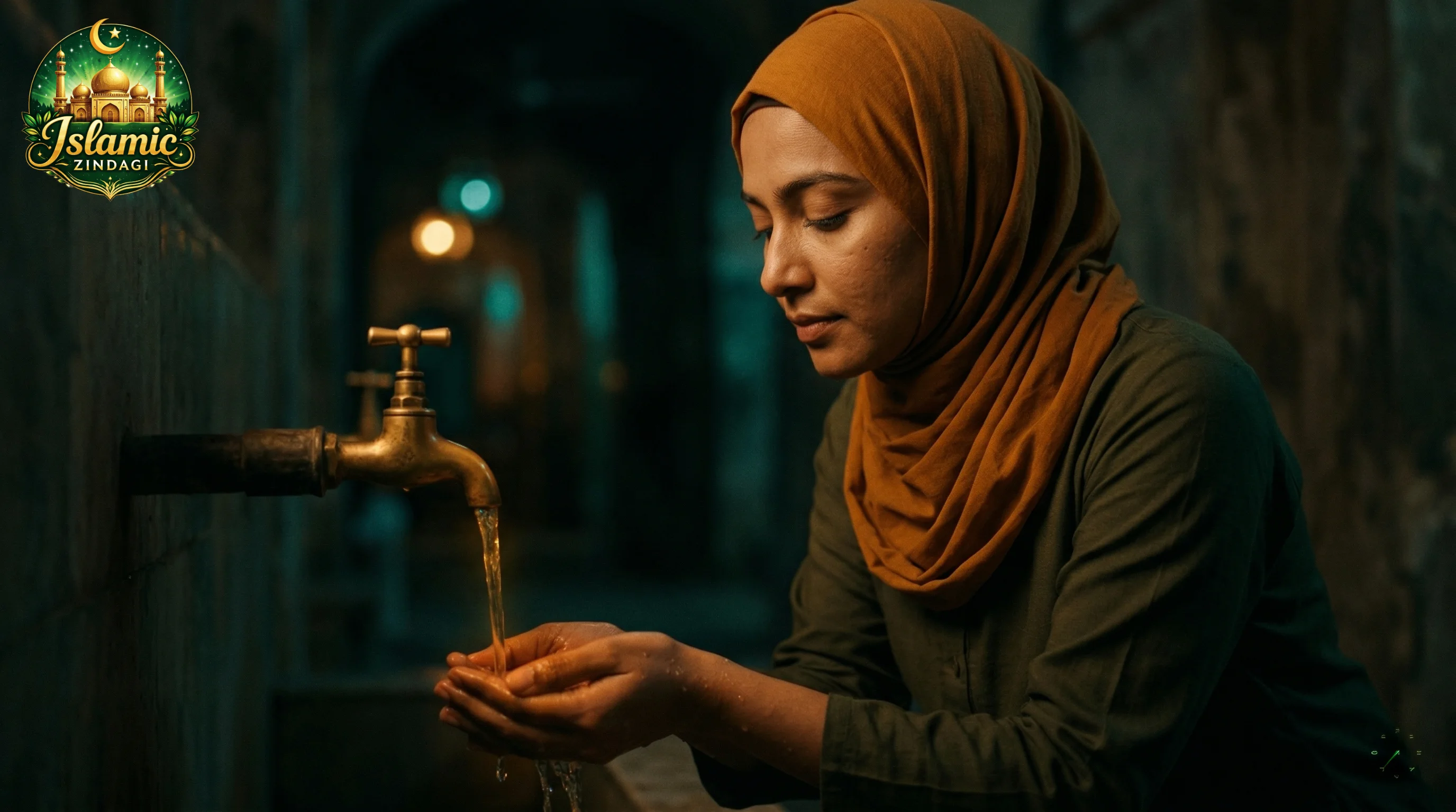 Wuzu ko mehsoos karo. Wuzu sirf haath dhona nahi hai. Yeh tayyari hai. Jab paani haathon par girta hai — mehsoos karo ki gunah dhuul rahe hain. Jab chehra dhote ho — sochho ki Allah ke saamne saaf ho kar ja rahi hoon. Wuzu ko mindful banao.